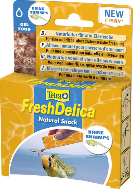 Tetra FreshDelica Brine Shrimps ist ein Leckerbissen in Gel Form. Dieser Snack für Zwischendurch dient dem gesunden Futterspass und einer natürlichen und abwechslungsreichen Ernährung aller Zierfische. Die ballaststoffreichen Krebstiere enthalten neben lebenswichtigen Nährstoffen auch einen besonders hohen Anteil an natürlichen Carotinoiden und sorgen damit für eine Verstärkung der Farbenpracht bei allen tropischen Fischen.