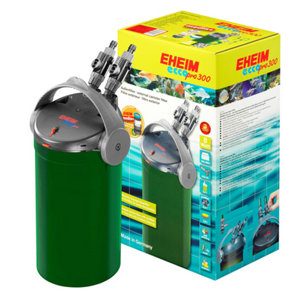 Eheim Aussenfilter ecco pro 300. Dieser Aussenfilter ist geeignet für Aquarien von ca. 160 bis 300 Liter mit einer Leistung von 750l/h. 8W, 20.5x41.6cm.
