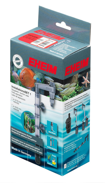 Eheim Installations-Set 1. Das Eheim Installations-Set 1 ist ein modulares Installationsset zur problemlosen Schlauchverbindung für alle Eheim Aussenfilter. Sichere und wasserdichte Verbindung des Kunststoff-Schlauches mit dem Aussenfilter. Je nach Bedarf kann zusätzlich das Saugrohr verlängert oder verkürzt werden.