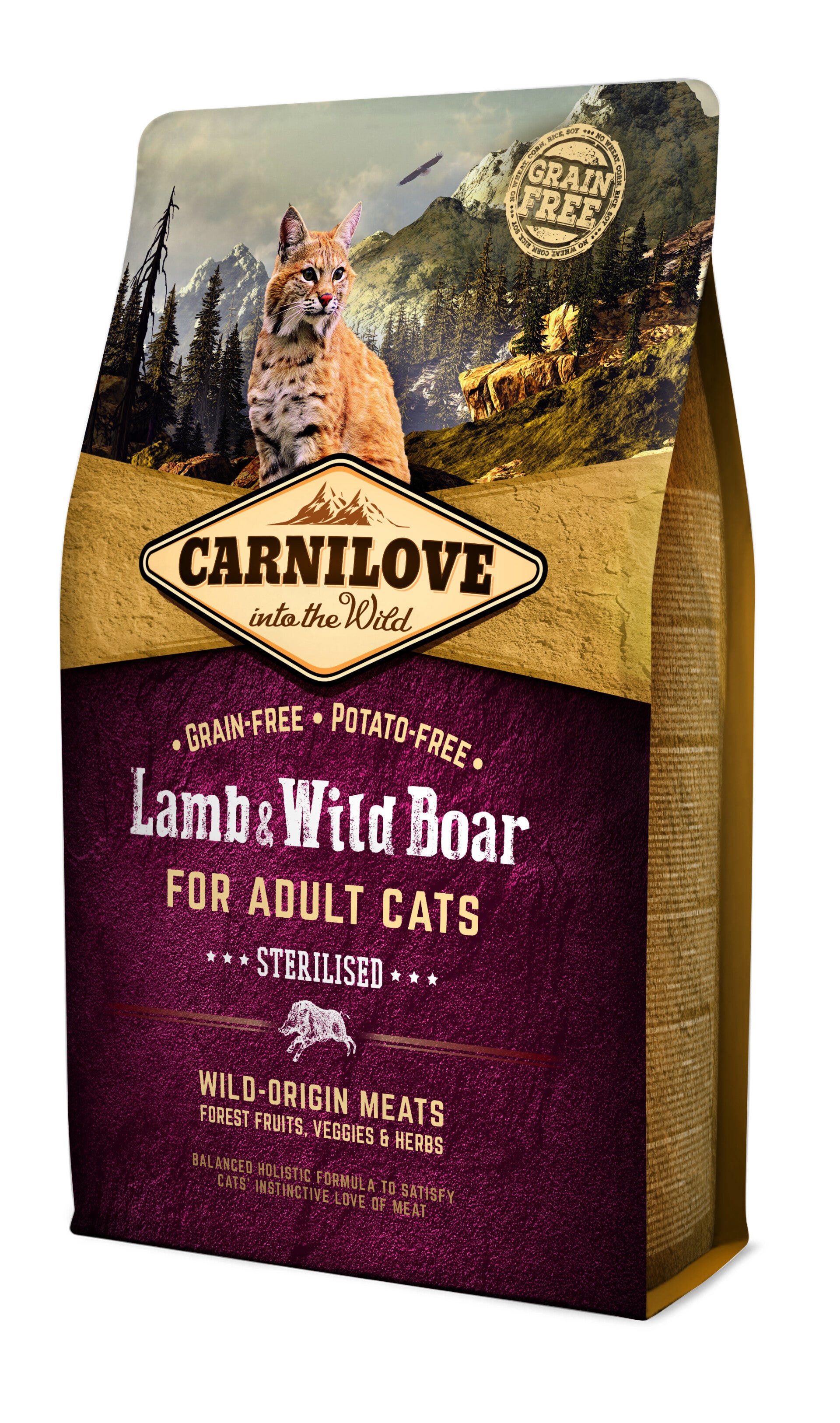 Um fit zu bleiben, benötigen ausgewachsene Katzen ein Futter, das reich an qualitativ hochwertigen Proteinen ist und ausreichende und ausgewogene Mengen an essentiellen Aminosäuren enthält. Carnilove Lamb & Wild Boar für ausgewachsene Katzen wurde mit dem Gedanken an die natürliche Zusammensetzung von Katzenfutter zusammengestellt. Lamm und Wild sind leicht verdauliche diätetische Proteine, die für die Erhaltung einer perfekten körperlichen Kondition von sterilisierten Katzen ideal sind.