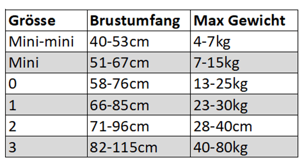 Das sehr robuste Hundegeschirr K9 passt zu jedem Hund. Daher bieten wir das Geschirr in 6 unterschiedlichen Grössen an. Siehe weitere Beschreibung weiter unten.